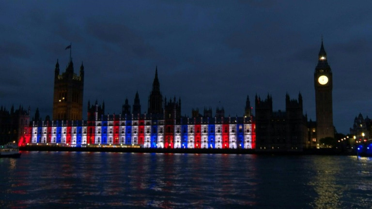 London (AFP) – Westminster, Britain’s parliament, lights up in red, white and blue to mark 80 years since the end of World War II. On the other side of the landmark, images of Victory in Europe Day are projected onto Big Ben.