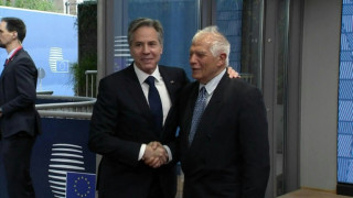 Brussels (AFP) – US Secretary of State Antony Blinken and EU Foreign Policy chief Josep Borrell arrive for an EU-US energy council meeting.